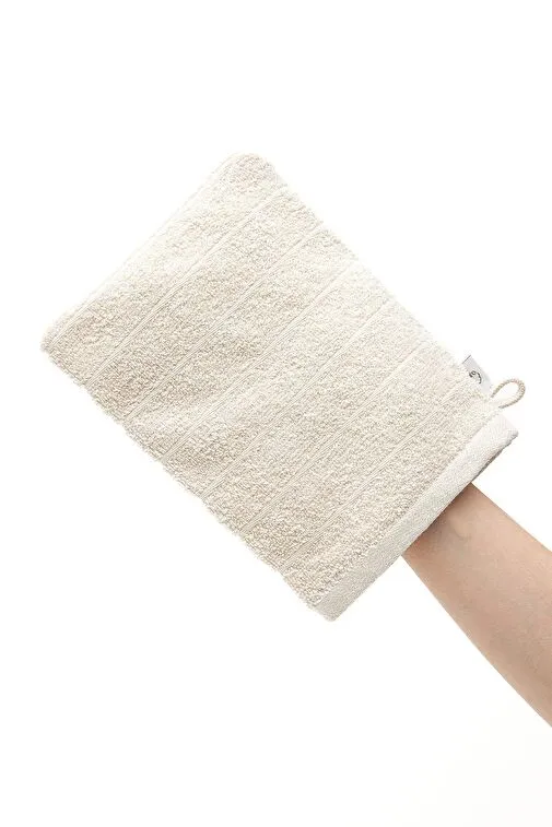 Rightmoda Havlu Banyo Kesesi %100 Pamuk Bukle 2’li Set Çizgili-Kapama Bordürlü Krem 15×20 Cm